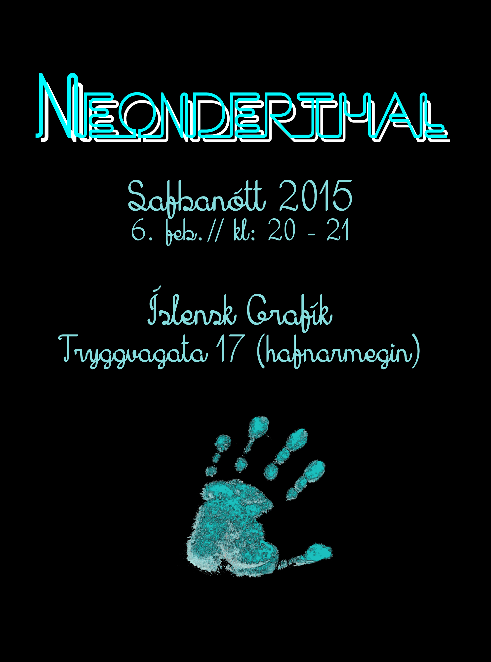 Verið þið velkomin á Neon þrykk stuð á Safnanótt föstudaginn, 6.febrúar á milli 20:00-21:00 á verkstæði Íslenskrar Grafíkur. Neon-derthalar taka á móti ykkur í blússandi træbal-diskóstuði.