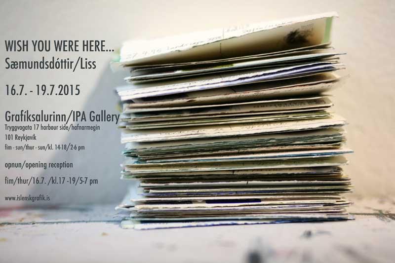 Wish you were here er örsýning og póstkorta prójekt málarans Soffíu Sæmundsdóttur og fjöltæknilistakonunnar Heike Liss sem kynntust á námsárum sínum í Kaliforníu. Frá janúar 2015 hafa þær búið til og sent hvor annarri póstkort þar sem þær fást við landslag hvor með sínum hætti. Á meðan á sýningunni stendur munu listakonurnar sýna kortin sem hafa ferðast milli heimshluta en einnig munu þær setja upp einskonar framleiðslustöð í Grafíksalnum og halda vinnunni áfram sem á þessari stundu er óljóst hvert stefnir.