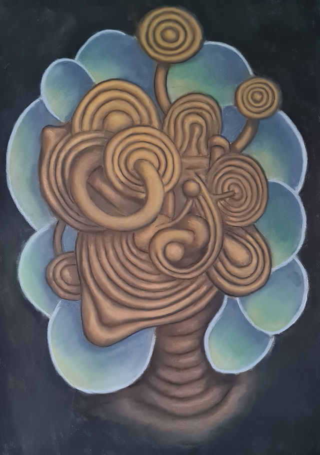 Á sýningunni eru pastelmyndir sem eru unnar á árunum 2018 til 2021.