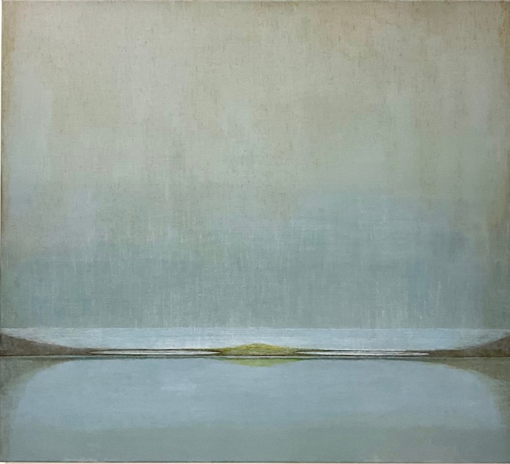 Steinunn G. Helgadóttir segir í texta um sýninguna: „Í list myndlistarkonunnar Guðbjargar Lindar Jónsdóttur dvelur lognið í miðju skarkalans, síbreytilegur friður þar sem allt er náttúra og náttúran er allskonar og aldrei alveg kyrr. Við skynjum friðinn í birtuslæðu á haffletinum, viðsjárverðum öldutoppum, þoku-bakka við sjóndeildarhringinn, ljósaskiptum, formföstum hringjum sjóeldiskvía og yfirgefna bátnum sem bíður í flæðarmálinu eins og heimþrá. Friðurinn býr líka í kaffistellunum á gólfinu. Þau eru gamlir kunningjar sem kynslóðirnar hafa umgengist af varúð, bollarnir jafn mismunandi og varirnar sem snertu þá og við nánari athugun reynast sumir þeirra líka varðveita síðustu dropa liðinna gæðastunda og spádóma sem sumir eiga enn eftir að rætast. Kyrrðin verður að performans.“