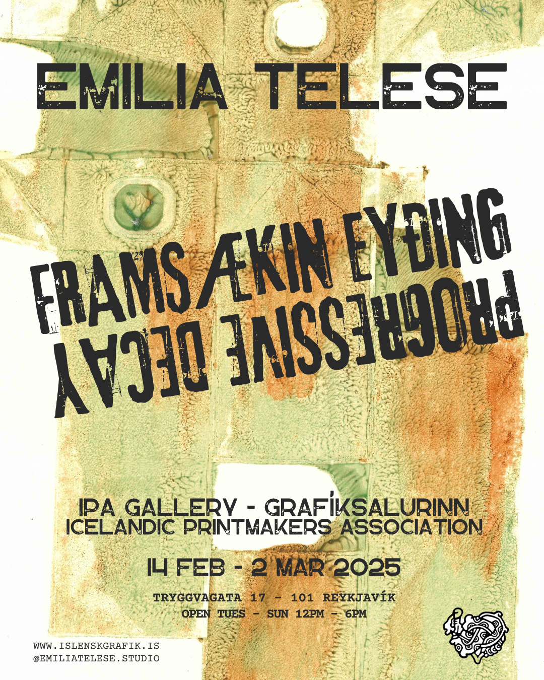 You’re invited to Emilia Telese’s solo exhibition Framsækin Eyðing – Progressive Decay at Grafíksalurinn/IPA Gallery , The Icelandic Printmakers Association in Reykjavík.