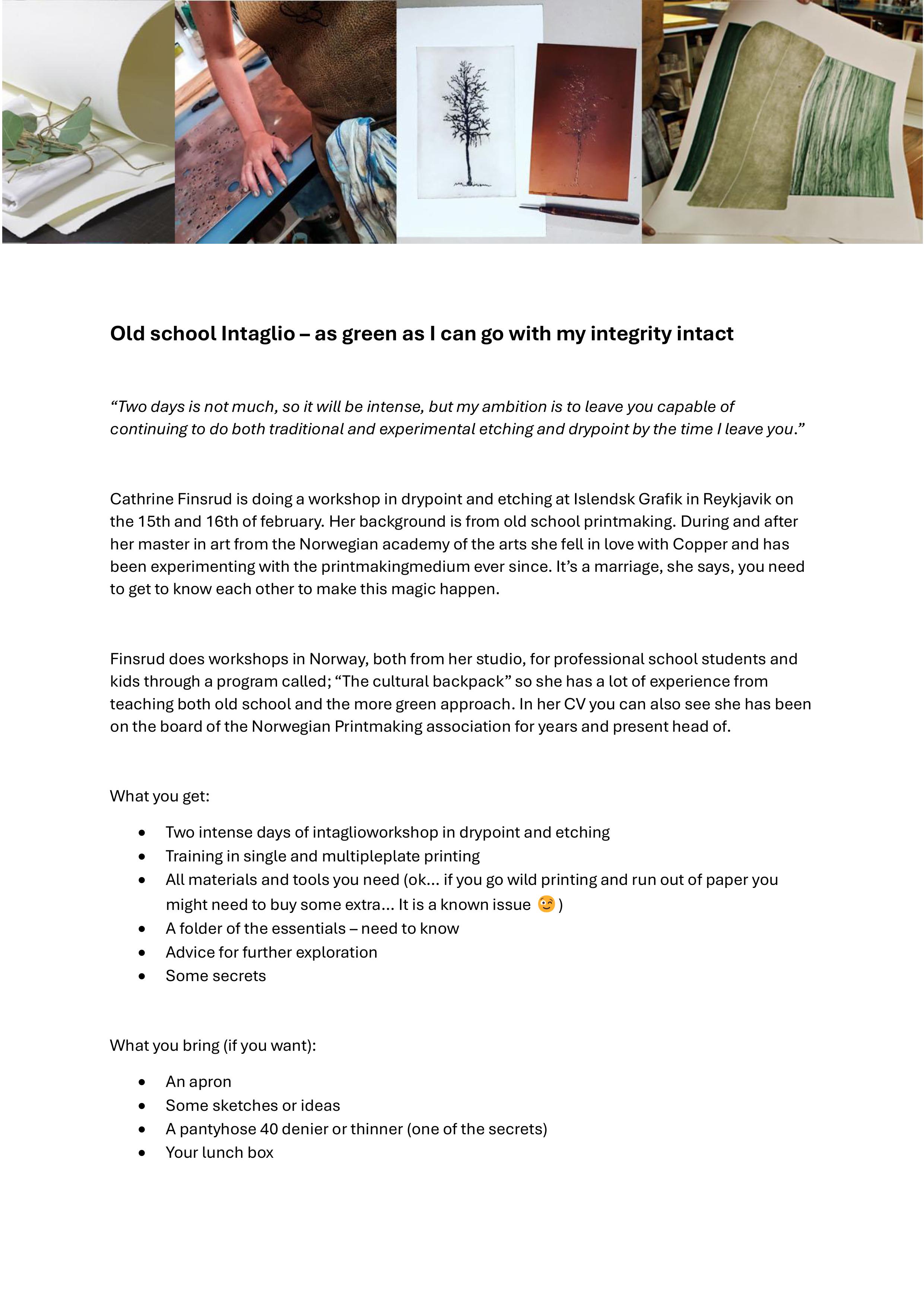 Intaglio Workshop / Námskeið í þurrnál og ætingu