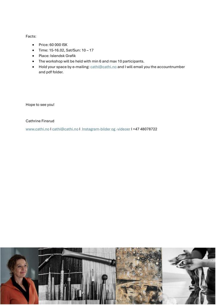 Robynn Smith is an internationally exhibiting artist from California. She has vast teaching experience and has a special connection to Iceland, where she has been visiting regularly since 2011. Robynn is the founder of Print Day in May, an annual, global celebration of printmaking and creativity. Please visit Robynn’s websites at www.robynnsmith.com and www.printdayinmay.com
