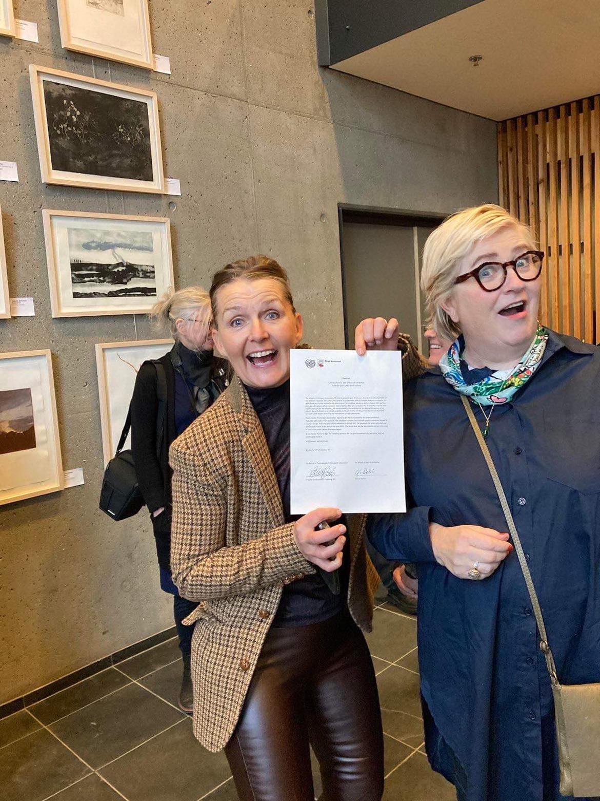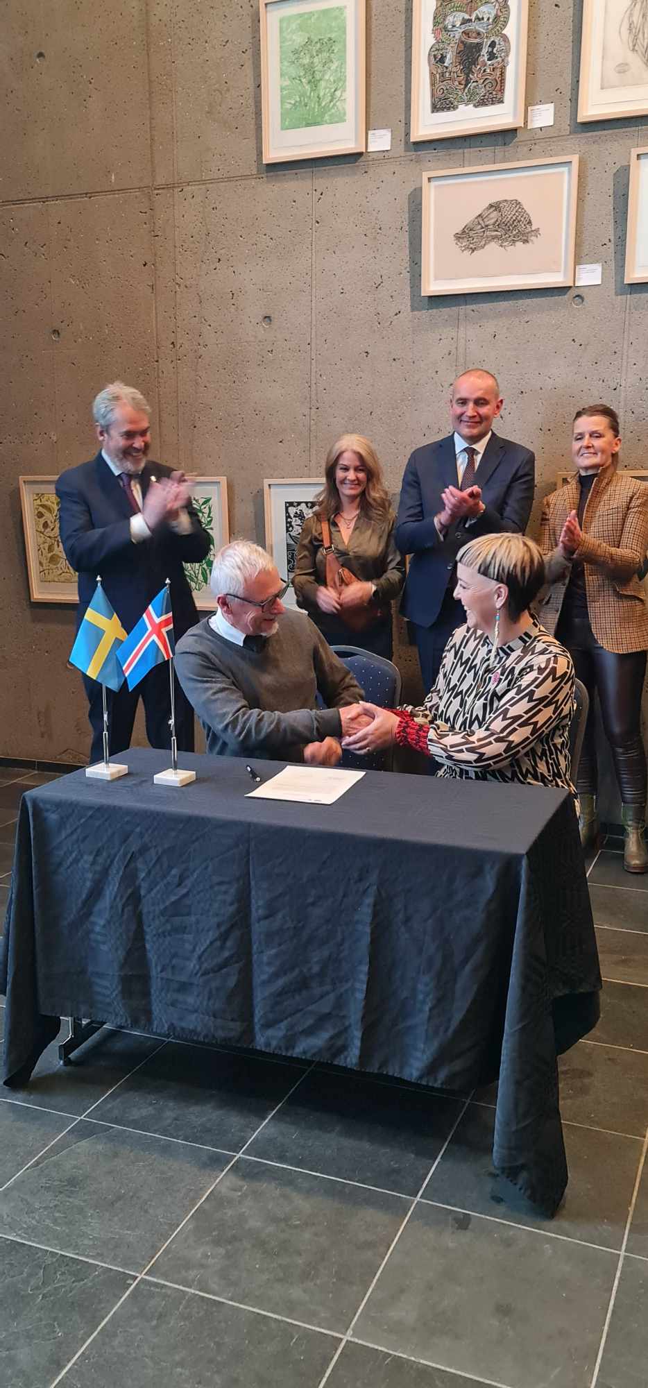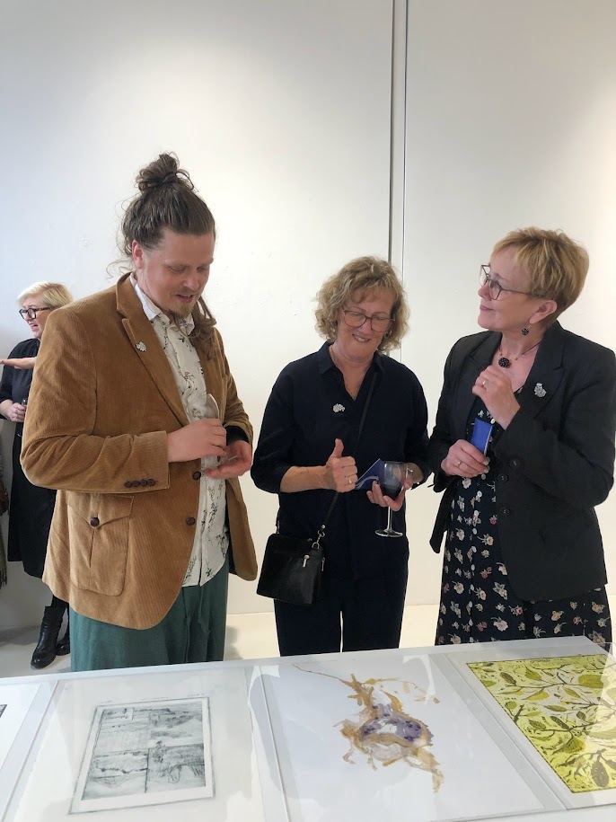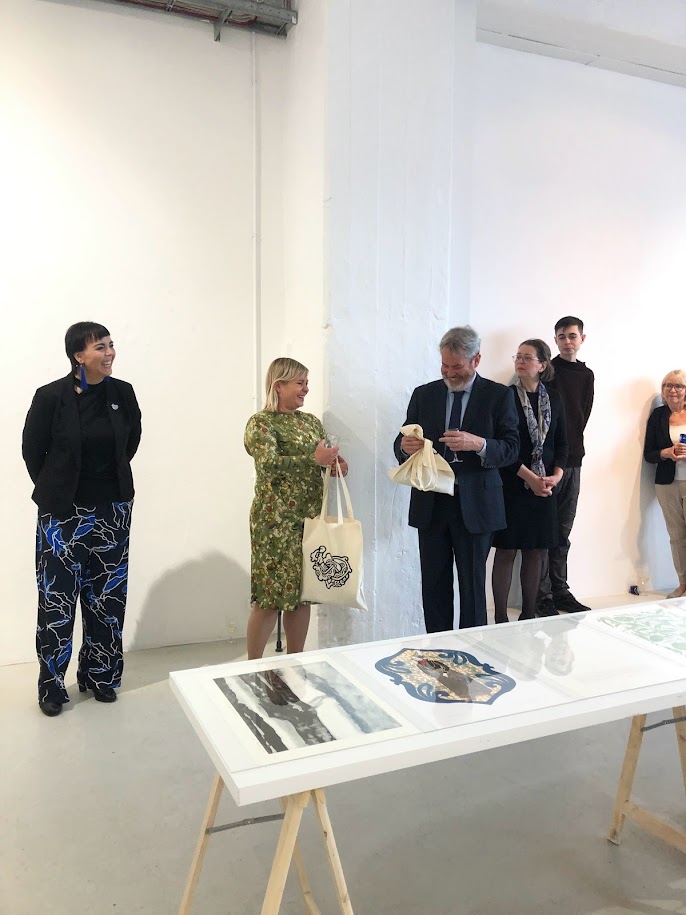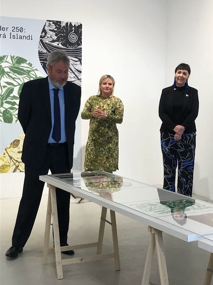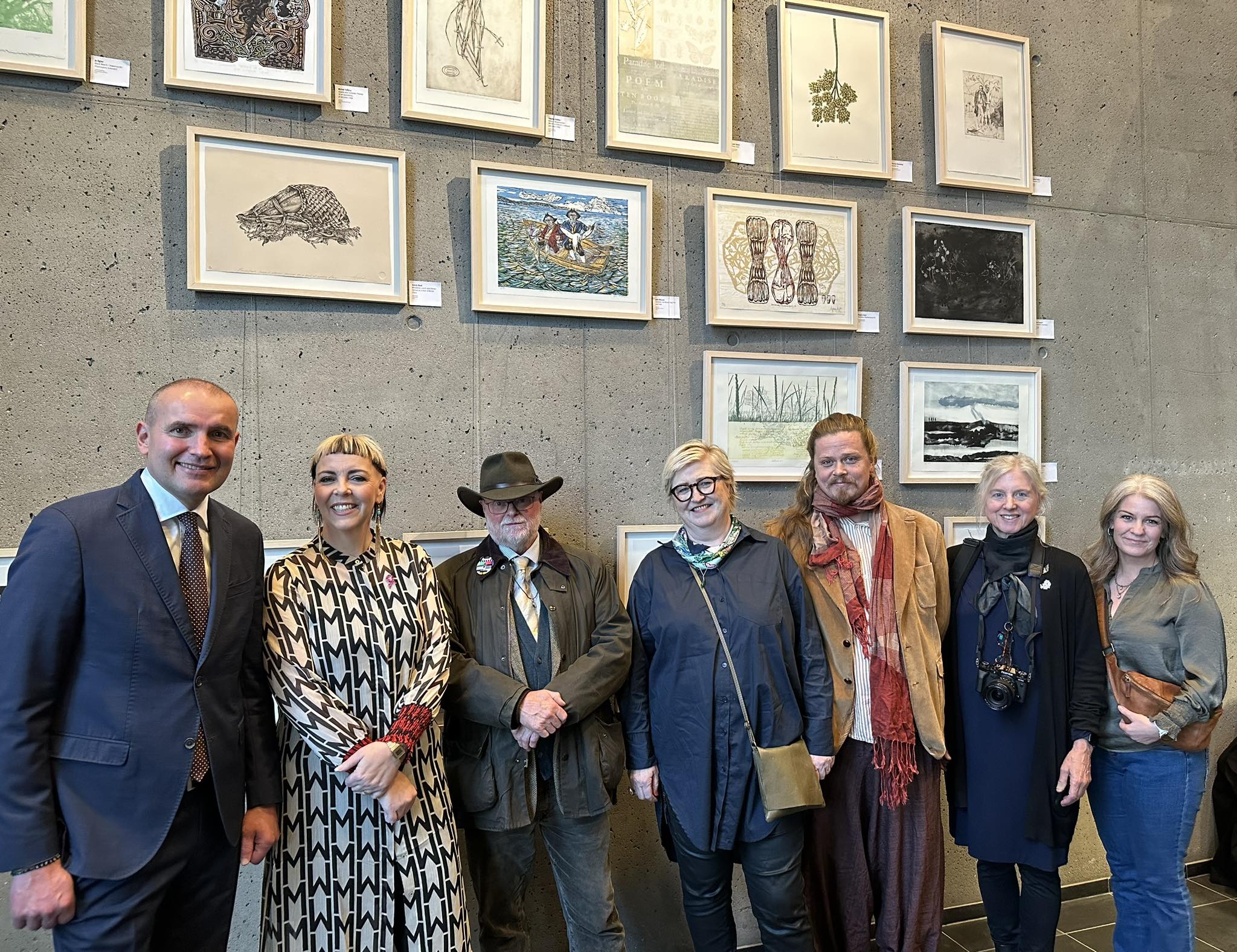 The Icelandic Printmaking association together with the ambassador of Sweden to Iceland at the opening of the exhibition Solander 250: Letters from Iceland at the exhibition hall Grafíksalnum, Íslensk grafík in Hafnarhúsin on Saturday, April 22. The exhibition is open until May 7, 2023