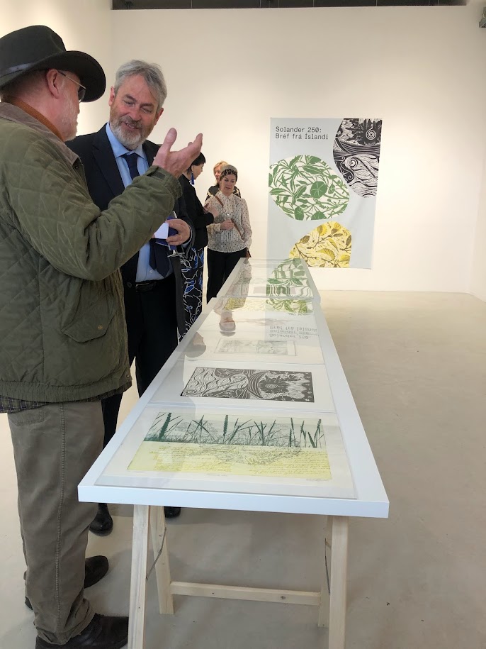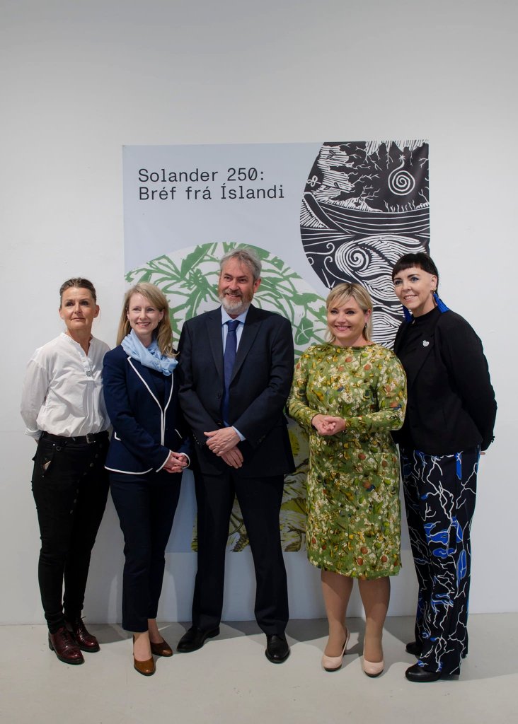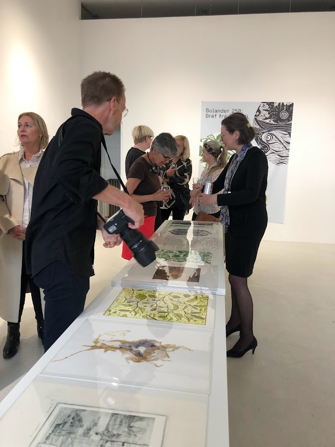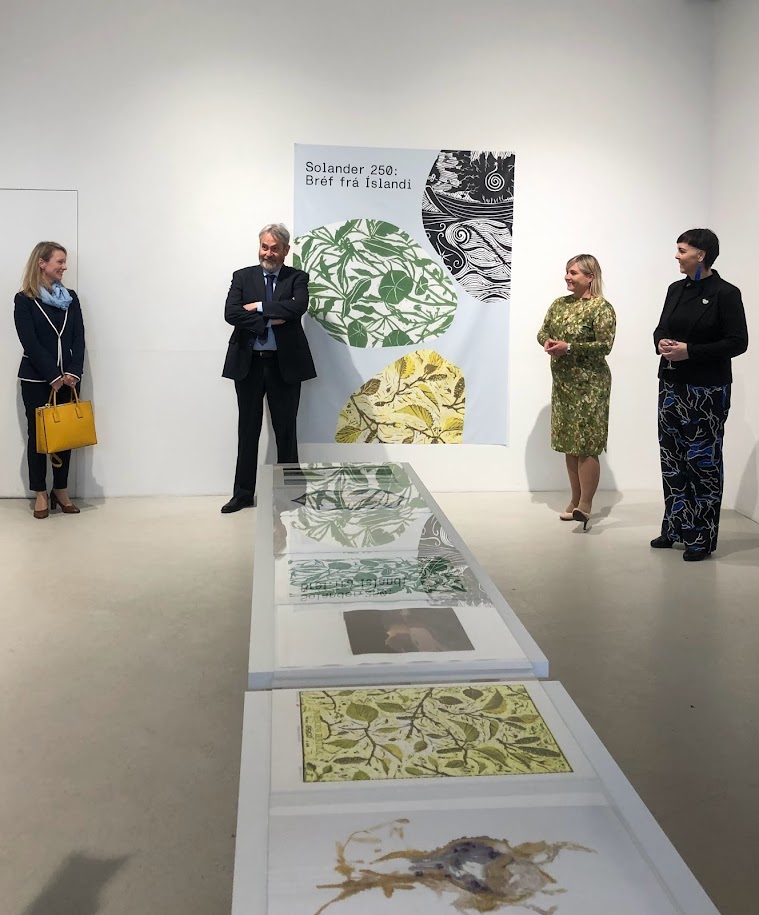 Félagið Íslensk grafík ásamt sendiherra Svíþjóðar á Íslandi á opnun sýningarinnar Solander 250: Bréf frá Íslandi í Grafíksalnum, sýningarsal Íslensk grafík í Hafnarhúsinu laugardaginn 22. apríl. Sýningin er opin til 7. mai 2023.